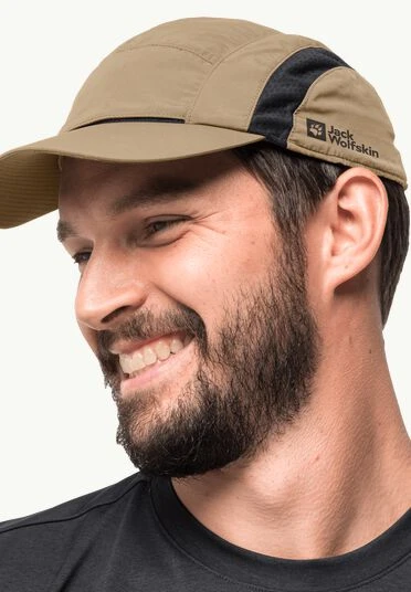 This Jack Wolfskin Vent Cap in Sand Storm is a reliable baseball cap for any sunny outdoor adventure. Its breathable, moisture-regulating, and fast-drying design keep you cool and comfortable, while odour-inhibiting technology and adjustable back closure provide all-day protection and convenience. Plus, it’s made with recycled materials for an added eco-friendly bonus. Weight: 60g.