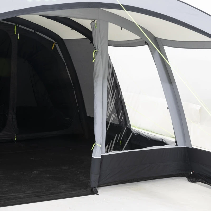 The 2023 Croyde 6 Air TC is an Inflatable Kampa Croyde 6 but with durable weathershield TC fabric. Weathershield TC has major benefits over polyester – It’s much cooler inside on hot days, It contracts and becomes more rigid when it gets wet and lastly and more importantly, if looked after will last much longer than regular fabrics. Weathershield TC is ideal for people who go away for long periods at a time, or who camp in hotter countries. Despite it’s size, the Croyde 6 Air TC inflates in just minutes leaving you more time to enjoy your holiday. A handy large porch leads to a generous living area with sewn in ground sheet. The living area will easily accommodate a large table, or enough space on rainy days for you all be inside and not on top of each other. The large ‘sleep tight’ darkened bedrooms are at the back of the tent, and will easily sleep up to 6 adults.Â