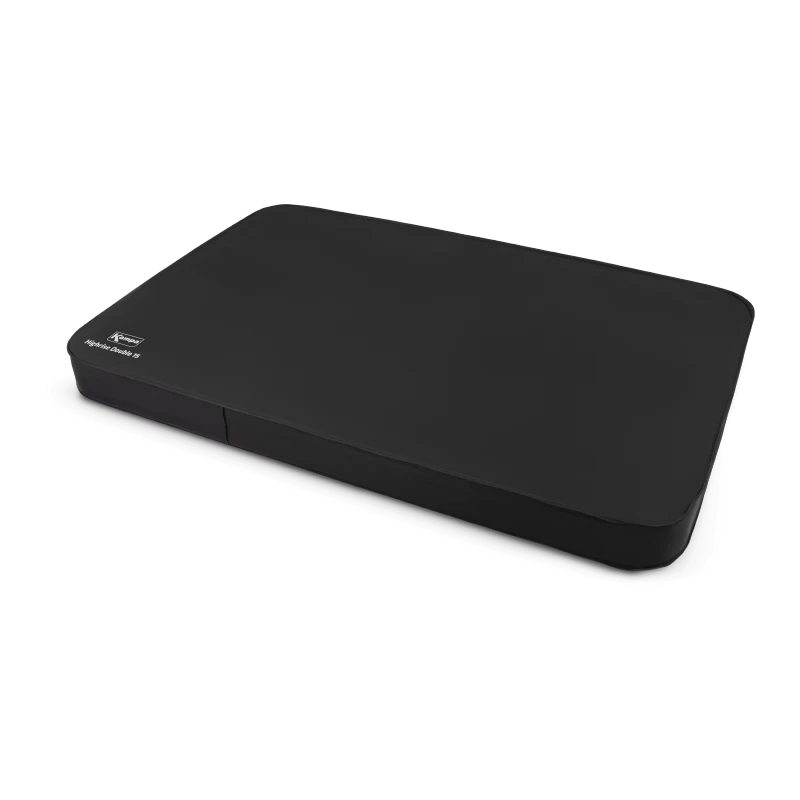 The Kampa Highrise 15cm Double SIM is the perfect camping companion. Two Easy-Use valves ensure rapid inflation and deflation, while adjustable firmness and vertical sidewalls ensure a larger, more comfortable sleep area. The soft stretch comfort fabric and retaining straps provide a snug fit, and a stuff sack is included for easy storage. Take your camping to the next level – 201cm x 128cm x 15cm. Not only a must have for camping trips, but an easy to use extra bed at home should you need the extra space, when you have guests staying over.