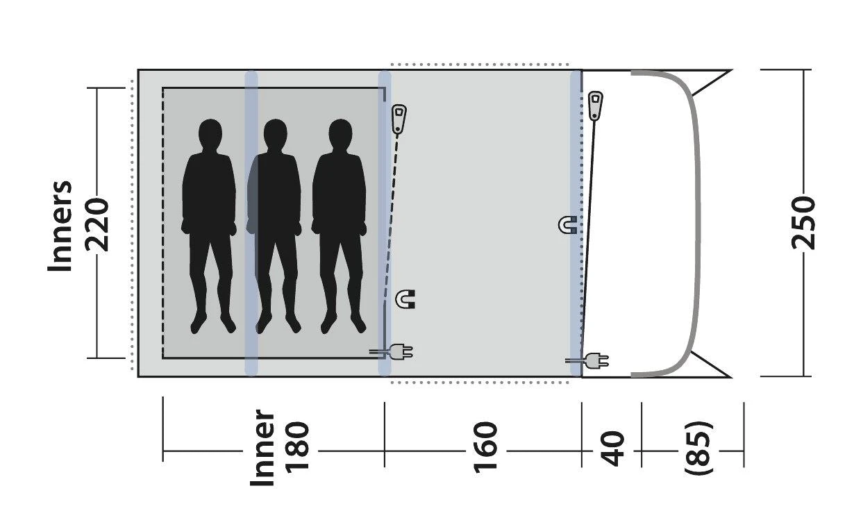 We get asked all the time for a smaller tent for two, or three people but one that you can stand up in too. Few and far between until now. The Outwell Elmdale 3PA is the the ideal tent for couples lookling for a bit of extra space or small families. A great tent for weekends or touring, the Elmdale 3PA is an inflatable tent which takes only minutes to inflate. There is a good sized living are with sewn in ground sheet a handy prorch area to the front, perfect for relaxing and watching the world go by. The bedrooms are at the back of the tent and will comfortably sleep three adults. All of this and the Elmdale has a 100% waterproof outer fabric that boasts a hydrostatic head of 4000mm.