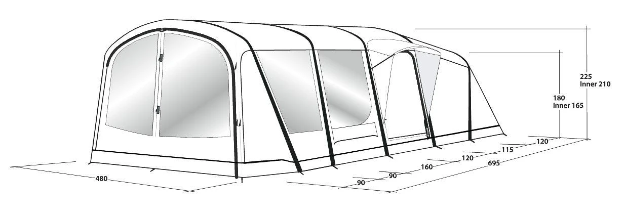 If you are a large family, or a smaller family that loves a bit of space, then the Outwell Sundale 7PA may just be the tent for you. Outwell are proud to postion themselves at the top end of quality when it comes to their gear and the Sundale 7PA is no different. There are three large sleeping areas at the back of the tent, in a three, three, two layout which feature darkened rooms to help you stay deep in slumber for longer. In front of the bedrooms is a large living area with fully sewn in ground sheet, easily big enough for a table, or for a great playing area. Next is another living area, this time without a sewn in groundsheet, this makes for an ideal place to store muddy boots, paddle boards or anything else you wouldn’t want in the living area. Outwell use magnetic doors internally which enables doors to be open and closed without the ‘wake the child’ noise. At the front of the tent is a great porch area that will be perfect for sitting under, sipping something cold and watching the world go by. The whole tent inflates in minutes, which is extraodinary for a tent of this size and boasts a hydrostatic head of 4000mm, giving you peace of mind that this tent is 100% waterproof and windproof too.