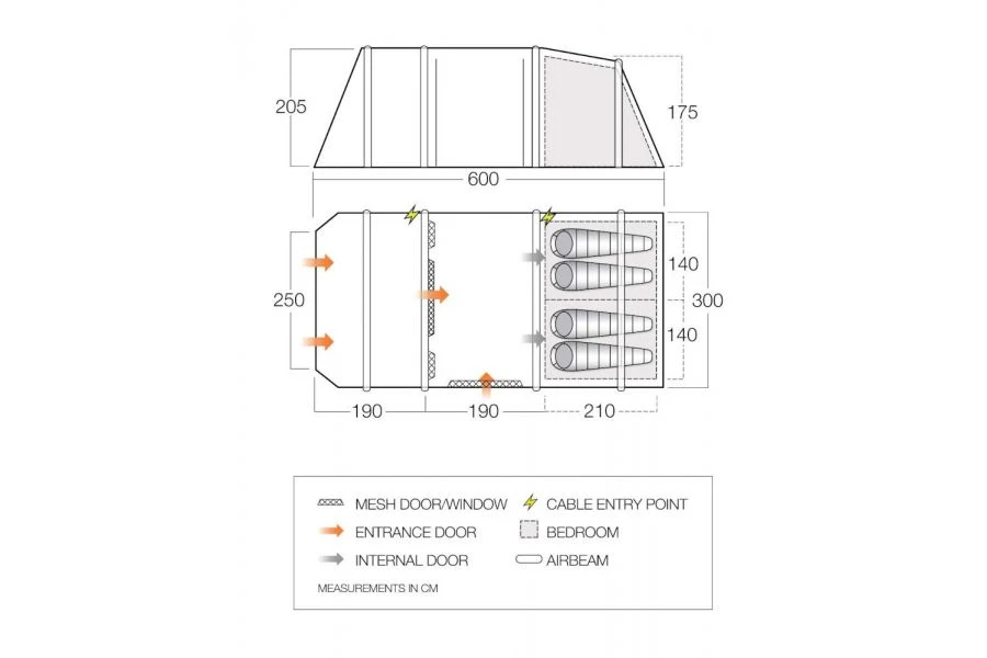 This Vango Lismore Air TC 450 Package 2023 is perfect for any camping situation. It features a lightweight design of only 30.5kg, while its max packsize of L70cm x H46cm x W47cm make it easy to store. With AirSpeed® Valve, it can be pitched in just 12 minutes. It is also fire retardant and meets European EN5912 safety standards. Diamond Clear Windows let in natural light, and its Fully Wind and Rain Tested fabric will keep you safe in all weather conditions. Enjoy plenty of spacious King Size Bedrooms for a restful night, and Lantern Hanging Points for convenience. TC Stands for Technical Cotton which is a much cooler fabric on sunny days and actually gets tighter and more robust when it gets wet. Add to this the fact that Technical Cotton will also last longer than standard polyester tents if looked after, you maybe left wondering why you don’t own one. For more information on this fantastic Vango four person tent, call one of our friendly staff on 01225 764977, or why not pop down to our Trowbridge superstore where we have the largest tent and awning displays in the South West.