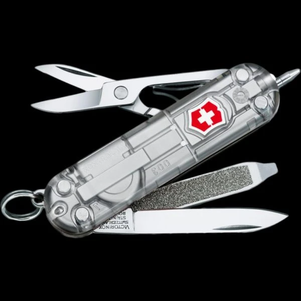 “Can I borrow a pen?” It’s a phrase you can strike from your vocabulary once you’ve slipped the Signature knife into your pocket. Because not only does it include all the traditional features of a Swiss Army Knife, it also includes a ballpoint pen. And with the addition of a bright LED, even darkness can’t hold you back. The Signature series has you covered like no other pocket knife.
